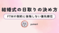 前回の記事では、私たちがFTWならではの制約の中で、結婚式の日時を決めた経緯について解説しました。